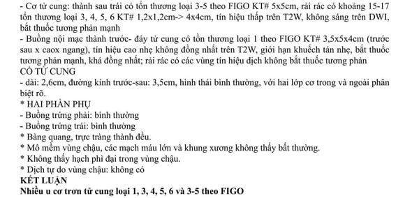 Tôi cầm hồ sơ, lật từng trang. Trang siêu âm nào cũng ghi u xơ khắp tử cung, từ trong lòng đến cả trên bề mặt. Kết quả MRI cũng cho thấy gần 20 cục u lớn nhỏ. Xét nghiệm máu thì lần nào cũng thiếu máu nặng.
